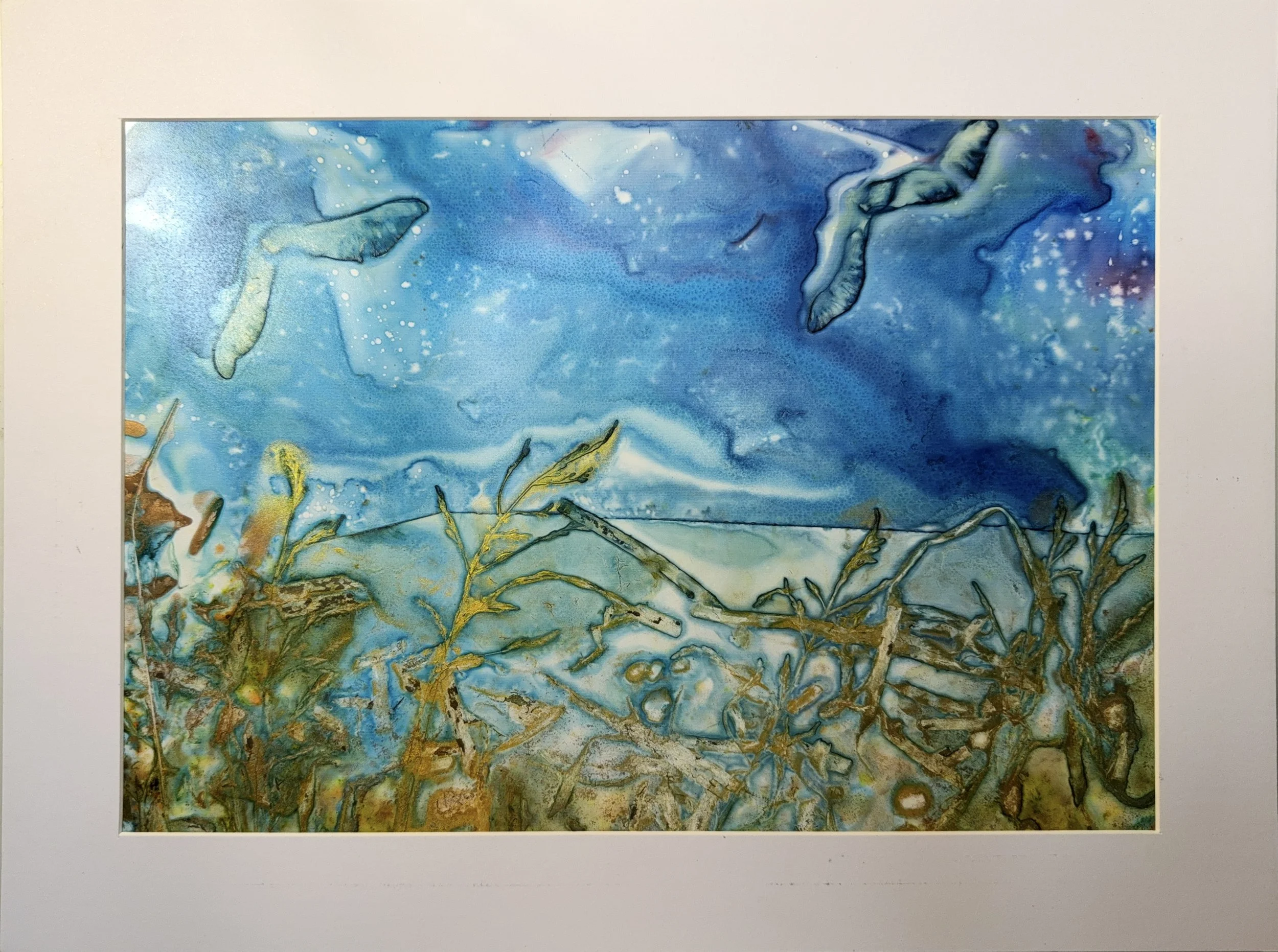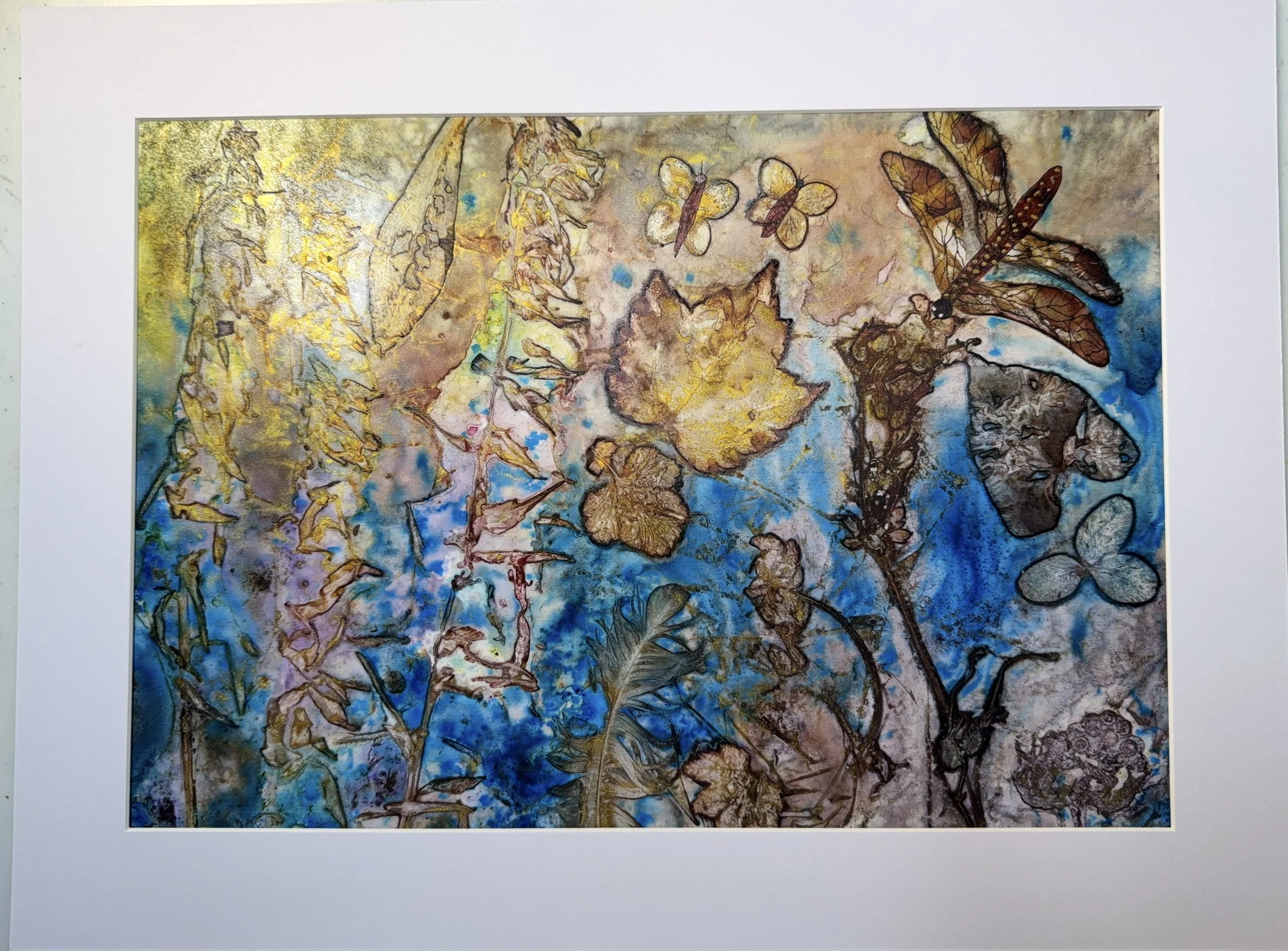 I love to use botanicals and other materials I find during my walks in my watercolour paintings. It makes me feel connected to the great web of life on our beautiful planet.